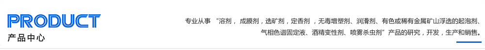 | ? 公司專業(yè)從事 “溶劑, 成膜劑,選礦劑,定香劑 ,無(wú)毒增塑劑、潤(rùn)滑劑、有色或稀有金屬礦山浮選的起泡劑、氣相色譜固定液、酒精變性劑、噴霧殺蟲劑”產(chǎn)品的研究,開(kāi)發(fā),生產(chǎn)和銷售。 |